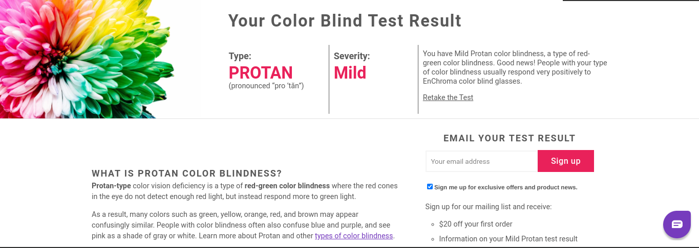 Mild Protan Test Result Enchroma Color Blind Test Enchroma